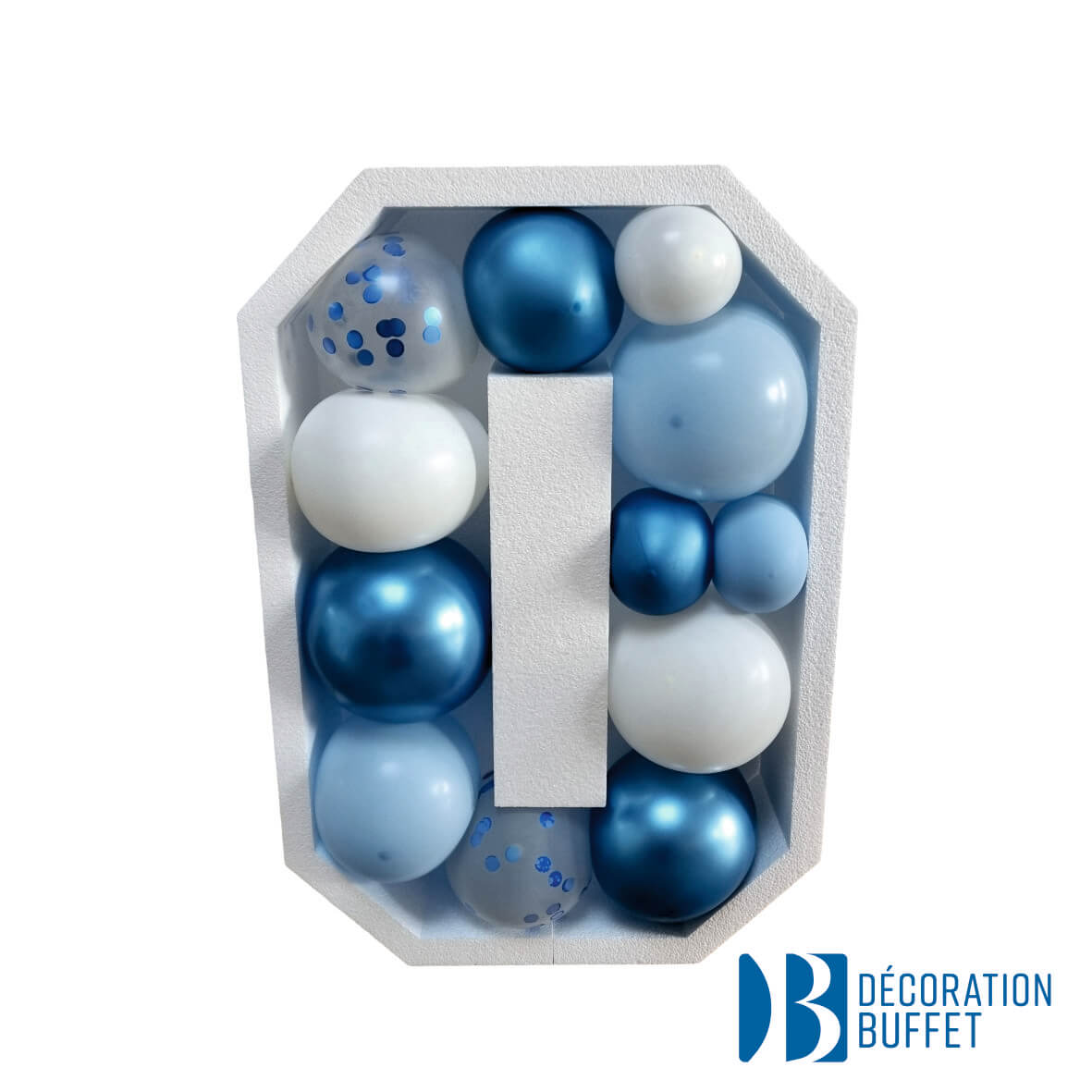 Notre chiffre peut être garni selon vos envies et vos inspirations : ballons, fleurs, papier crépon, végétaux stabilisés, paillettes, plumes, ou tout autre élément décoratif.