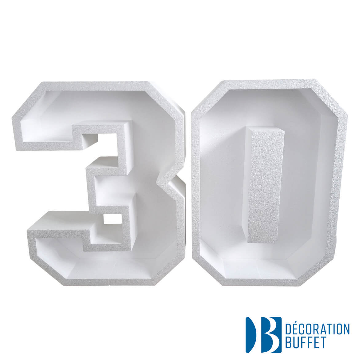 Découvrez nos chiffres en polystyrène à garnir, parfaits pour mettre en valeur vos événements. Avec une hauteur allant de 50 à 70 cm ces chiffres s’adaptent à toutes vos envies.